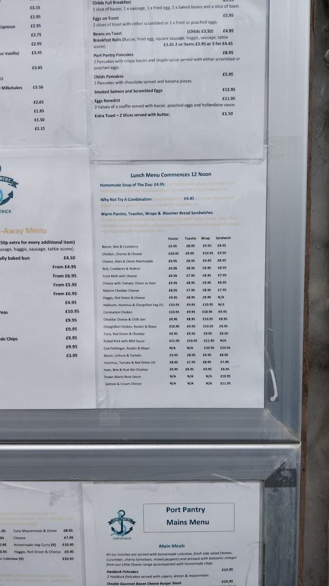 Port Pantry’s menu is a delightful blend of comforting classics and inventive twists that cater to both hearty and lighter appetites. The Haggis and Cheese Toastie stands out as a warm, satisfying choice, perfectly balancing the rich, savory haggis with gooey melted cheese. For something lighter, the Avocado Toast offers a fresh, vibrant option, ideal for a quick bite or a brunch treat. Fans of hearty fillings will appreciate the Chicken Chorizo and Cheese Toastie, where spicy chorizo and tender chicken are harmoniously combined with melted cheese, creating a flavor-packed experience. The menu also features a selection of baked delights, including the generously filled Baked Potato Wicoronation Chicken, which layers creamy coronation chicken atop a fluffy baked potato for a comforting and filling meal. Sweet endings are equally enticing, with the Caramel Slice providing a rich, indulgent treat that pairs perfectly with a cup of coffee or tea. Overall, Port Pantry’s offerings reflect a careful balance of traditional Scottish flavors and contemporary café favorites, each dish thoughtfully prepared to appeal to a range of tastes while maintaining a sense of homely comfort and quality.